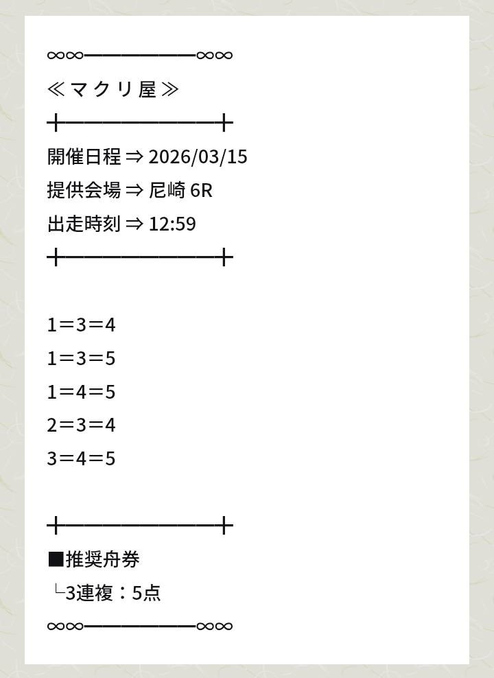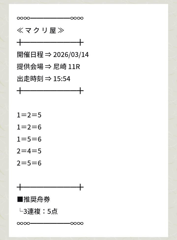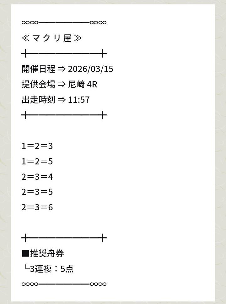 | ✅マクリ屋 | 口コミ2 件 | 1日12レース 3連複5点 舟券代指定無し |