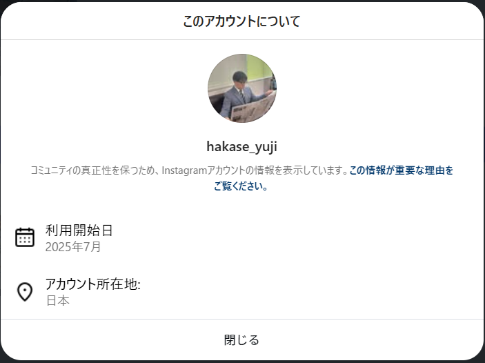 インスタグラムのアカウントは2025年7月から開始されてるようで、インスタグラムでの最初の投稿は「2025年7月2日」のようでした。