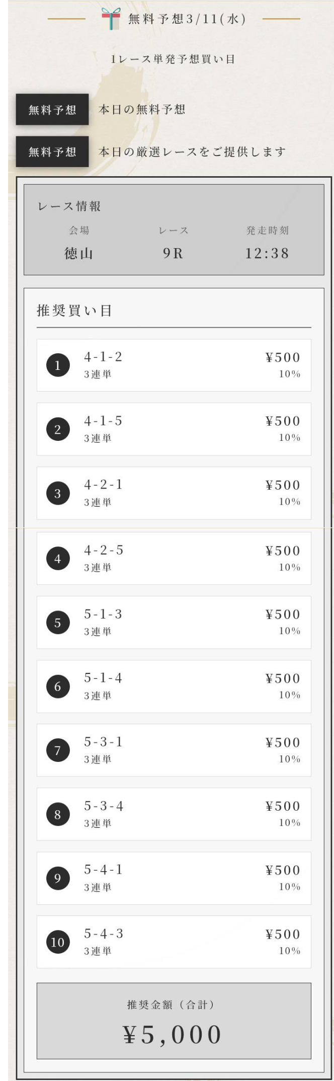 3月11日(水)徳山9R3連単0円5,000円5,000円画像をチェック!