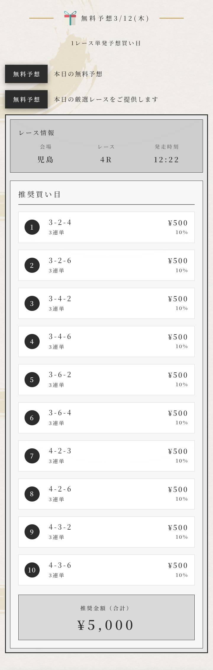 3月12日(木)児島4R3連単0円5,000円5,000円画像をチェック!