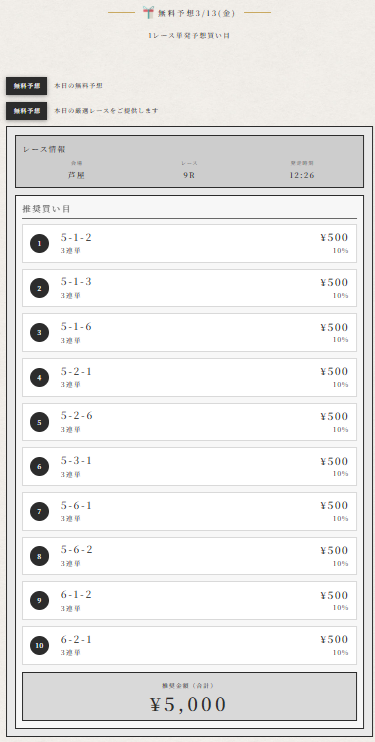 3月2日(月)芦屋9R3連単0円5,000円5,000円画像をチェック!