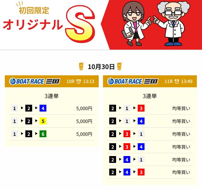 | オリジナルA | 30万円 | 250PT(25,000円) | 15,000円 | 2レース(コロガシ)3連単2~10点 | 初回限定プラン |