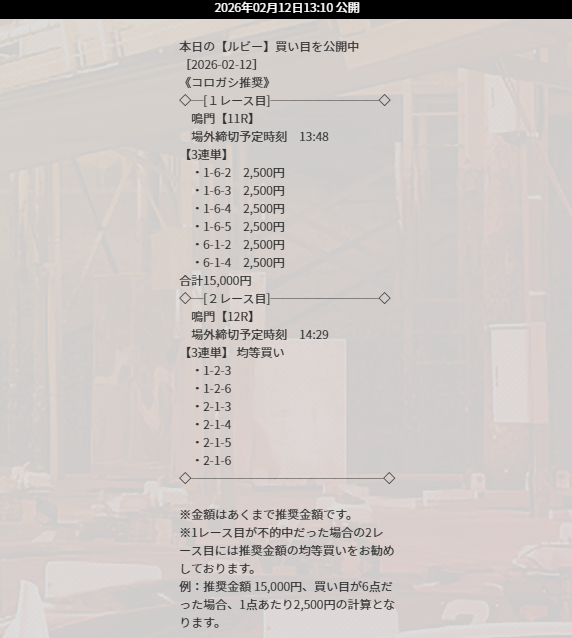 蒲郡8R→下関11Rコロガシ成功