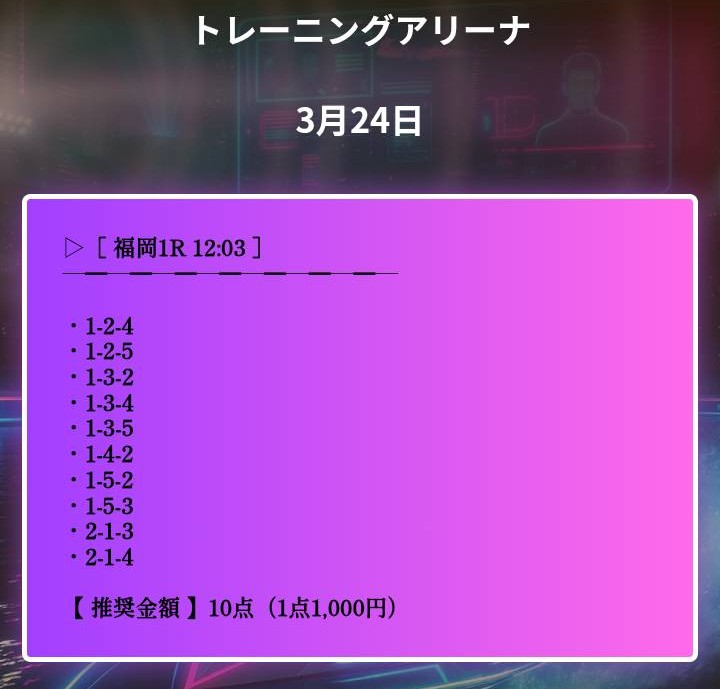 ネオ競艇の得意とする買い目は、他予想サイトと比べ似ているところはあるか現在調査中です。