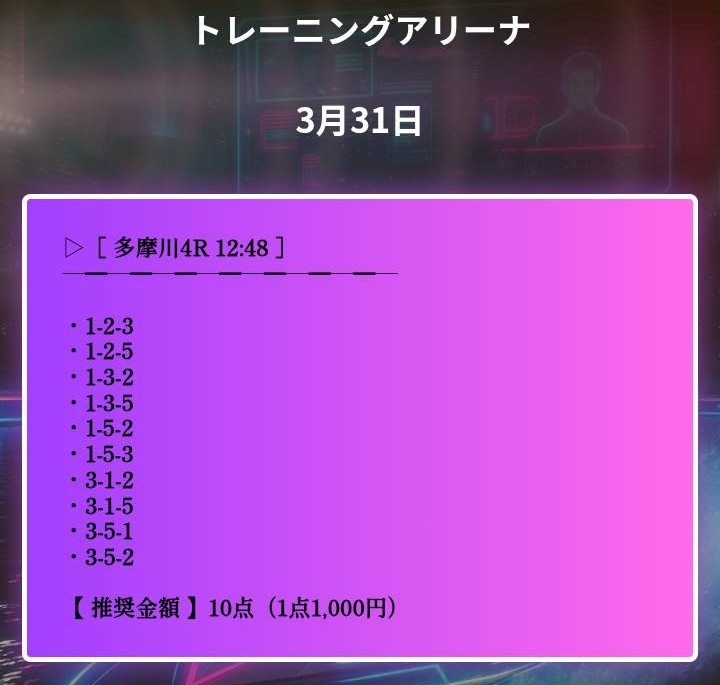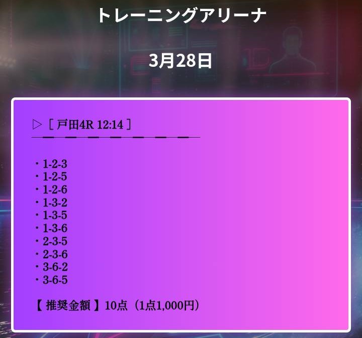 無料予想が当たらないので、有料予想に期待ができない為検証は見送り。