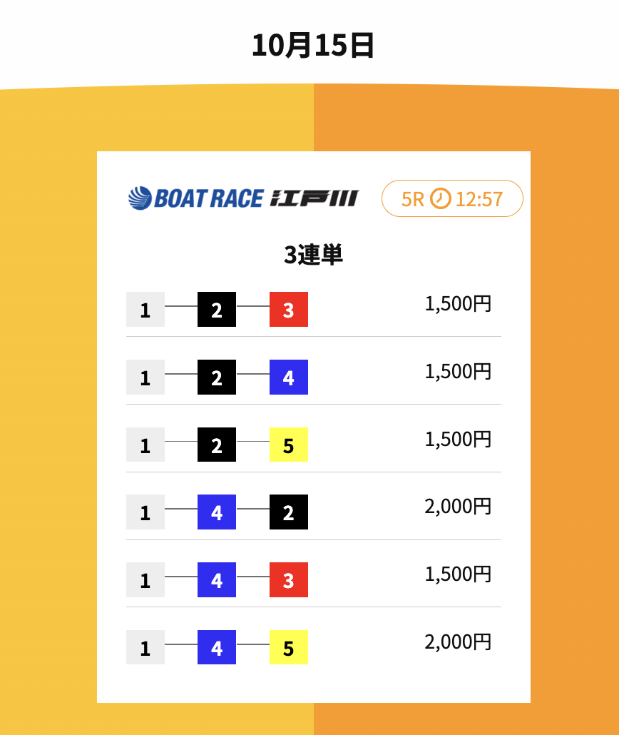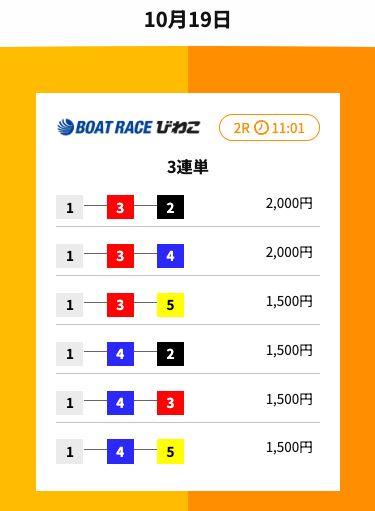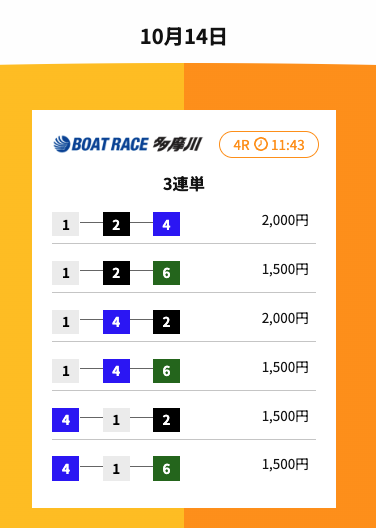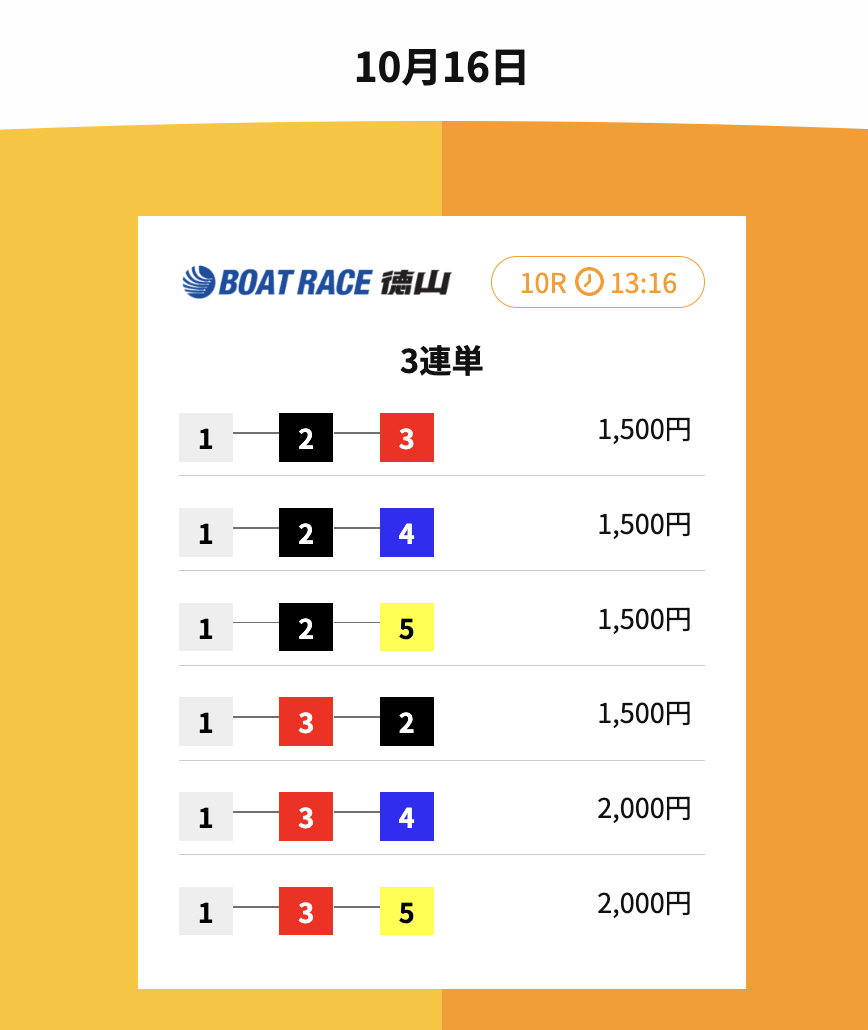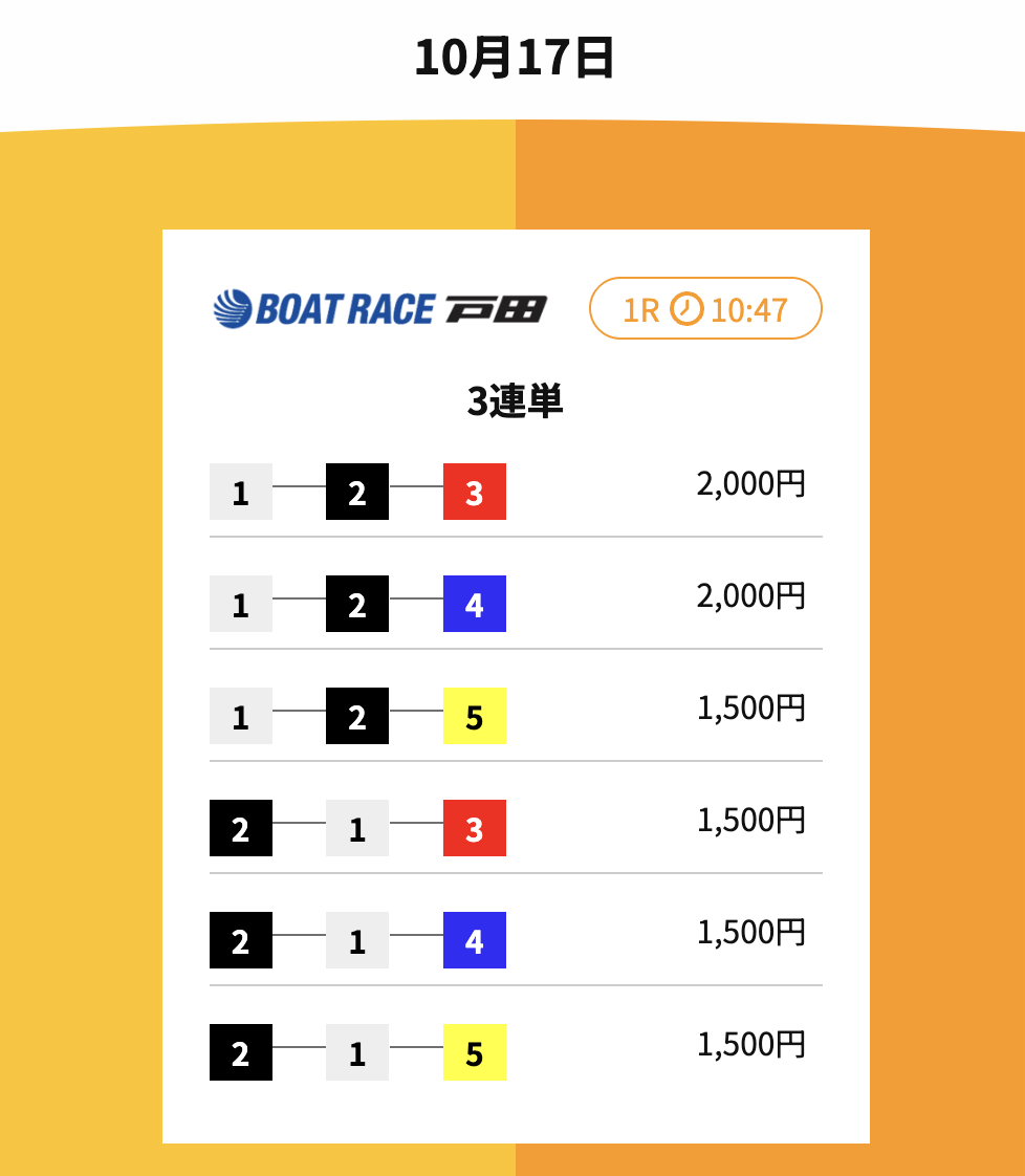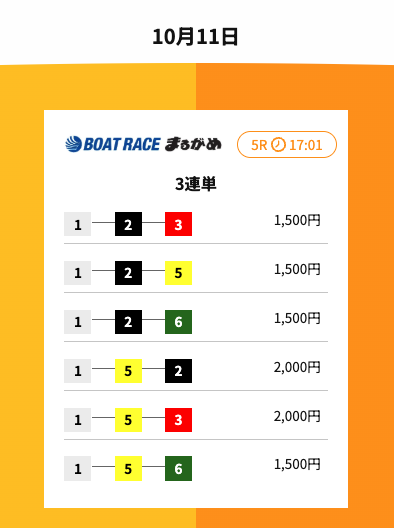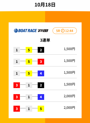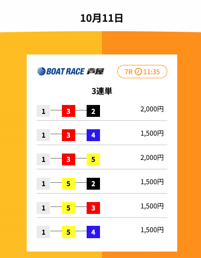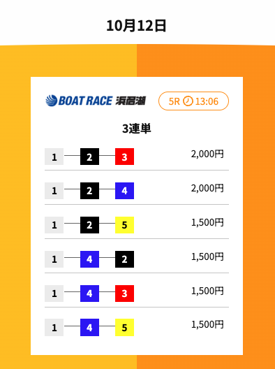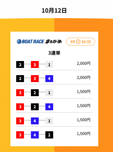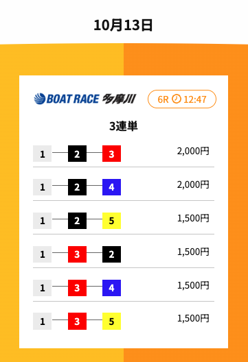 競艇RUSH | 口コミ76 件 | 1日2レース 1レースあたり1万円 3連単6点 1点あたり不均等 |