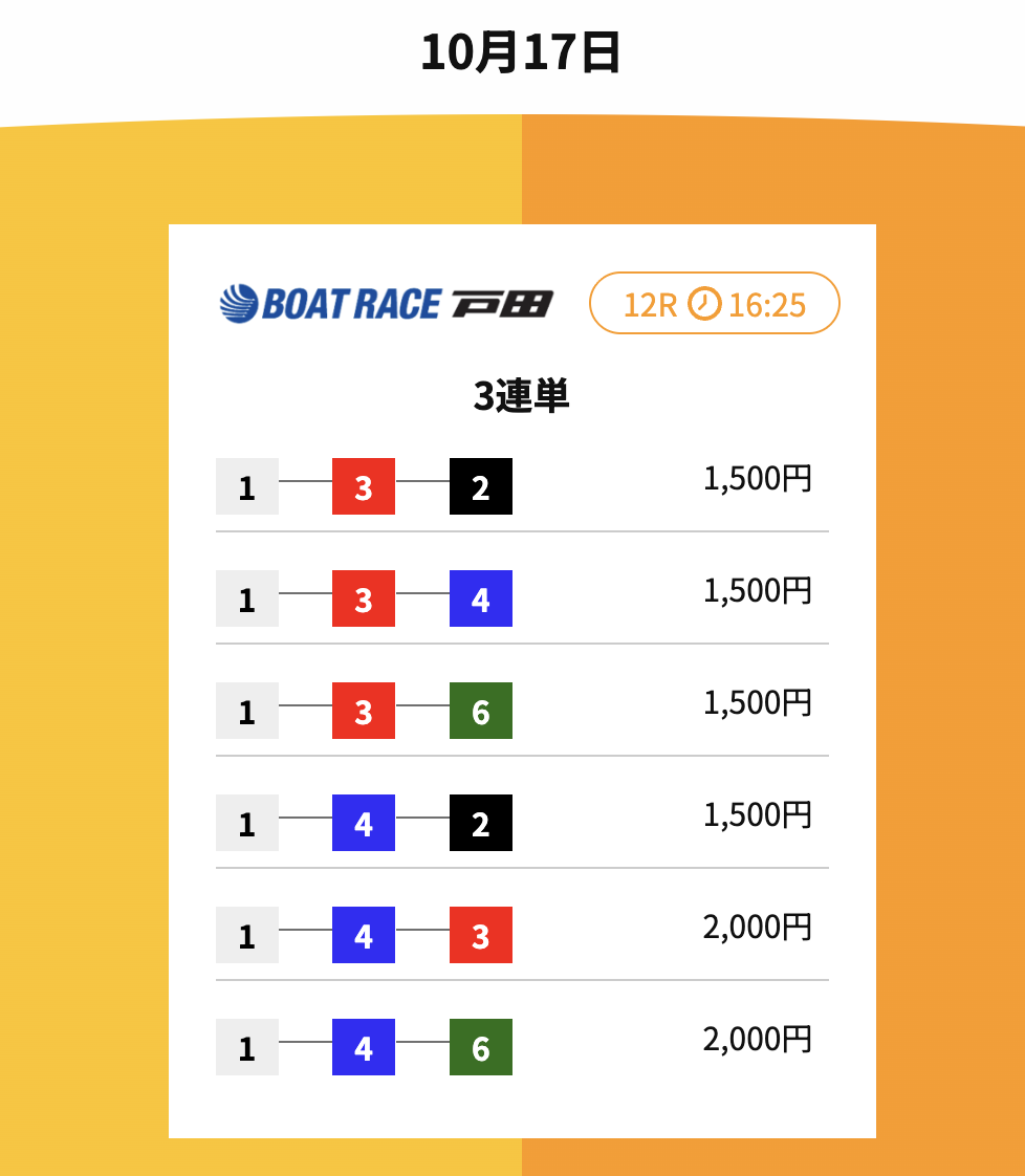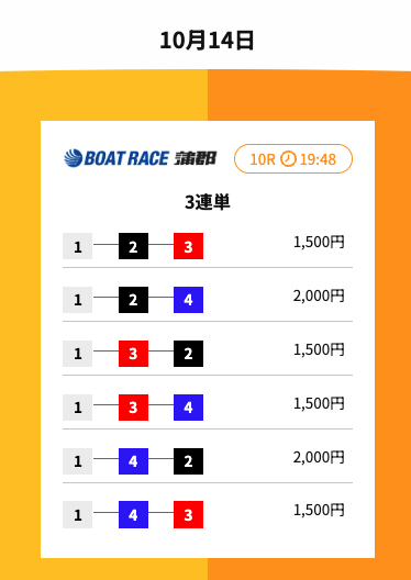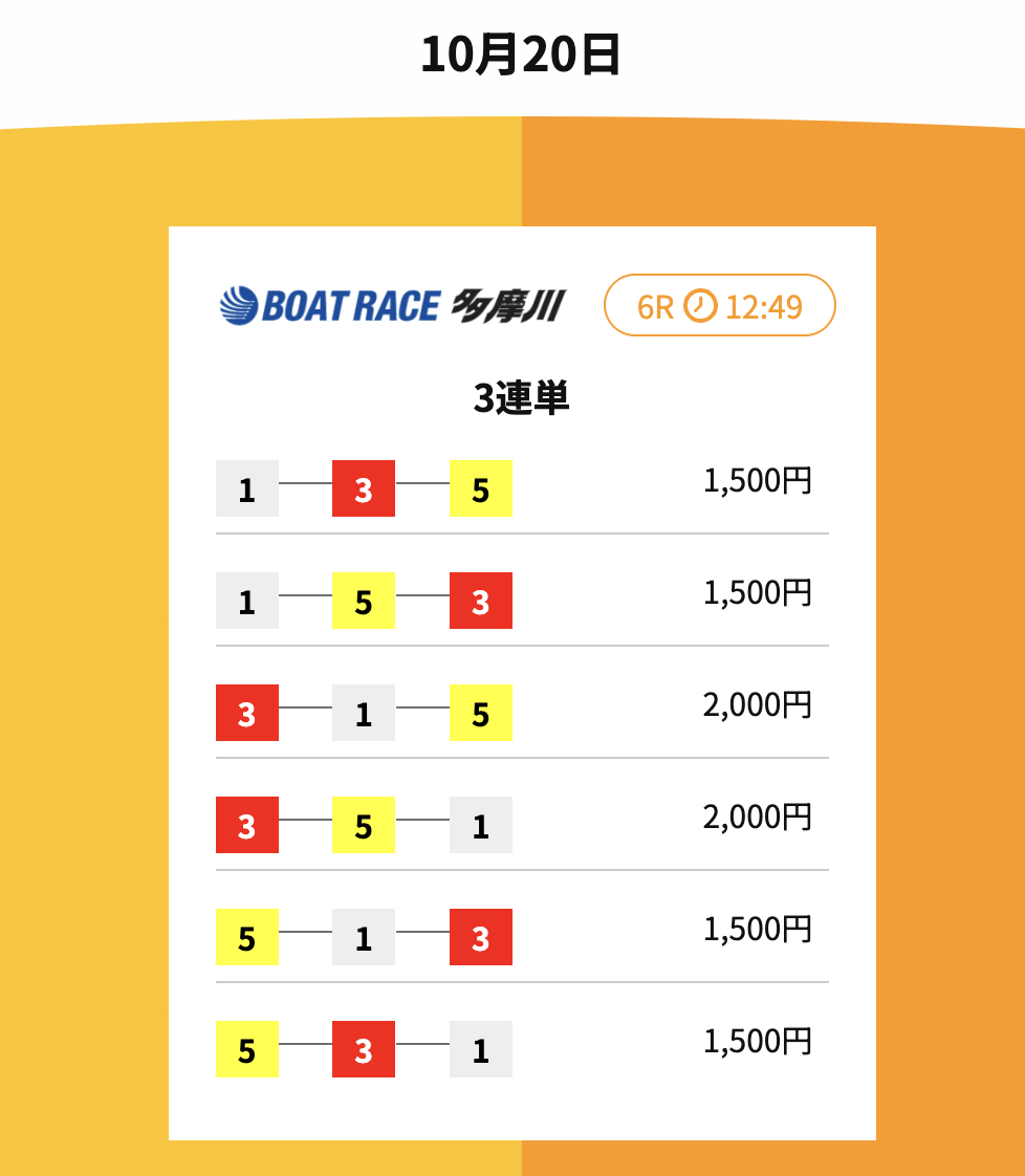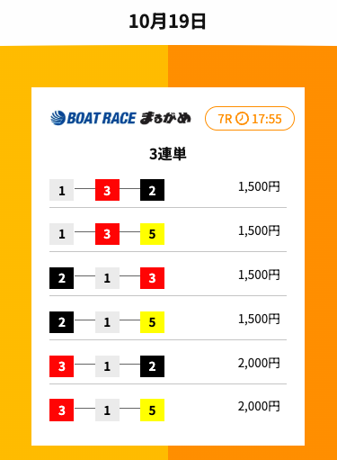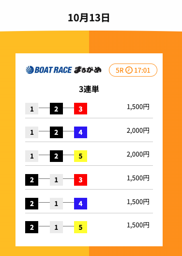 ウルトラボート | 口コミ53 件 | 1日2レース 1レースあたり1万円 3連単6点 1点あたり不均等 |