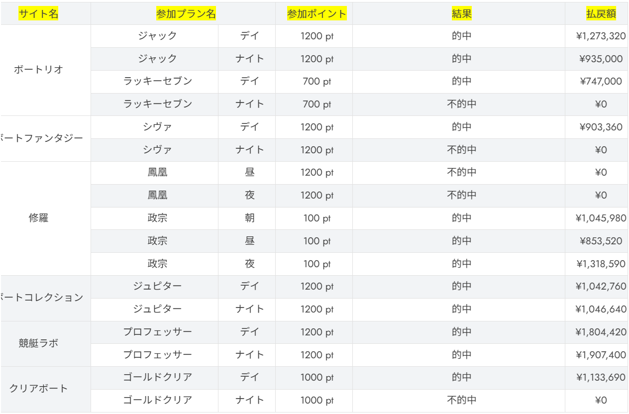 また、その日の収支は「どこの予想サイトから出したか」、各サイト各参加プランの収支を出している徹底さがあります。