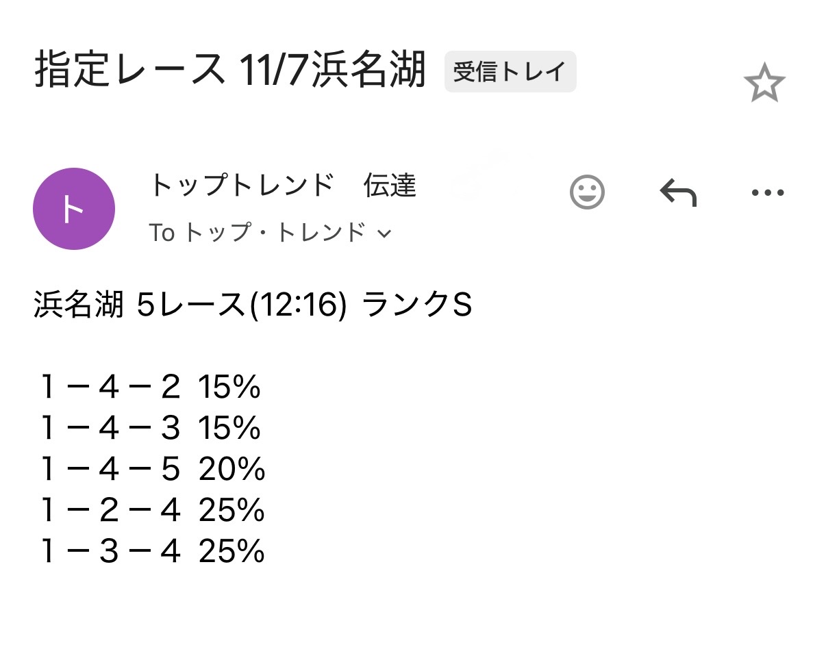 | Ⅱ「投資コース(東海)」 | 40,000円 | 当日の浜名湖、蒲郡、常滑、津 の情報を提供します |