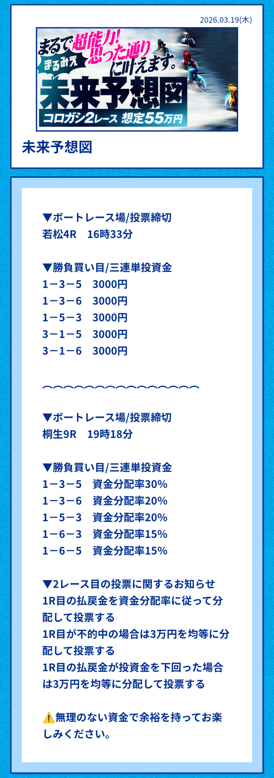 | 未来予想図 | 55万円前後 | 43,000円 | 10,000円 | 2レース(コロガシ)3連単 |